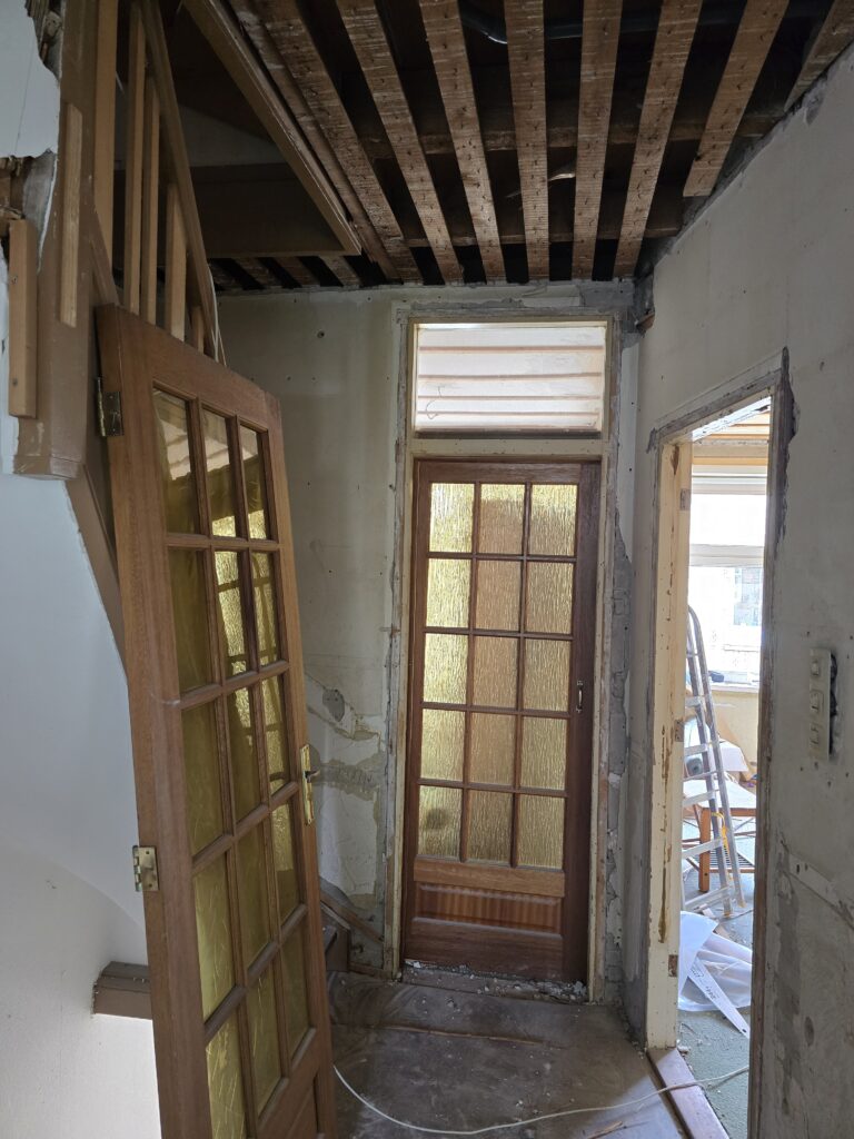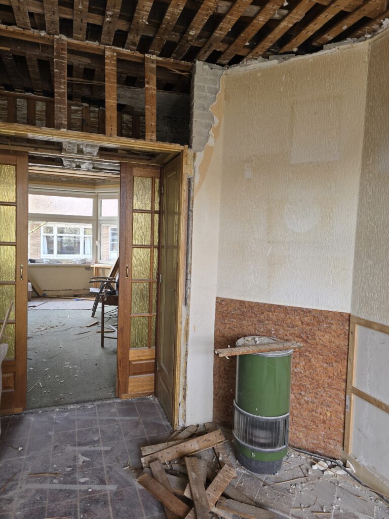 Cobus klust vooral zelf, in de weekends en met hulp van wat vrienden. Omdat het hele huis gestript is, kan hij met een handige planning van de volgorde van werkzaamheden, overal makkelijk bij. Hij heeft goede moed dat er vaart in de werkzaamheden zal blijven.